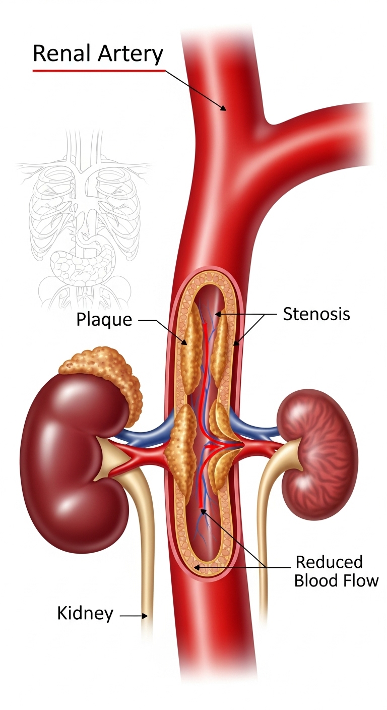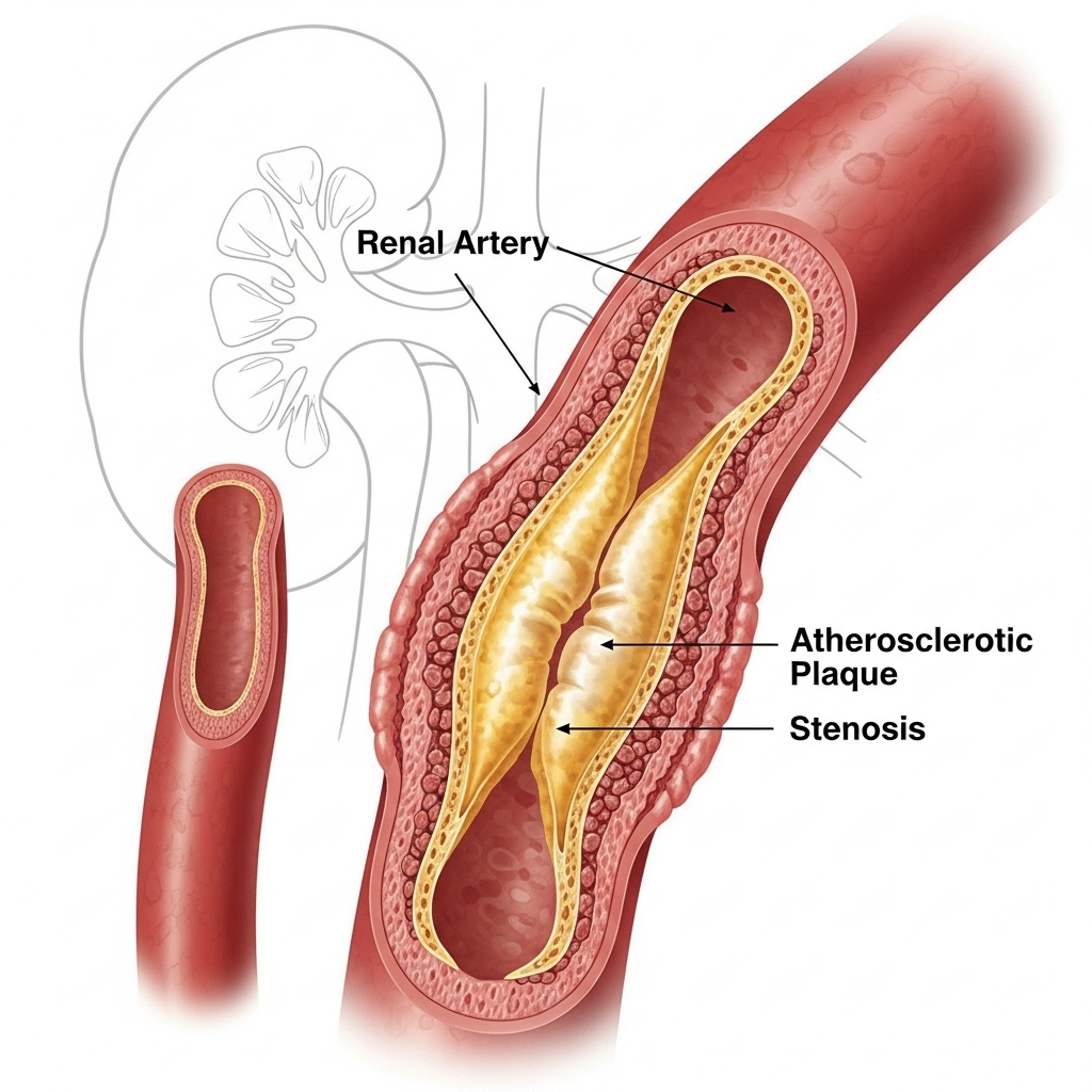 Renal artery stenosis (RAS) is a condition where the arteries that supply blood to your kidneys become narrowed or blocked. This kidney artery narrowing reduces blood flow to the kidneys, leading to high blood pressure and potentially serious complications if left untreated. Understanding this condition is the first step toward effective management and recovery.